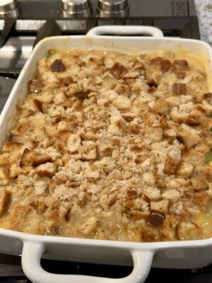 Five stars for not having cheese or sour cream. Love this casserole so much! I used a jar of homemade chicken stock to make my own cream of chicken soup, per the link you included. (Easy and really worth the extra effort!) I also followed the suggestion to mix the water into the stuffing cubes in a bowl before topping off the casserole. I also used a very diluted chicken broth for this instead of just plain water. So, so good. If hou are a casserole lover like me, this is heavenly stuff.