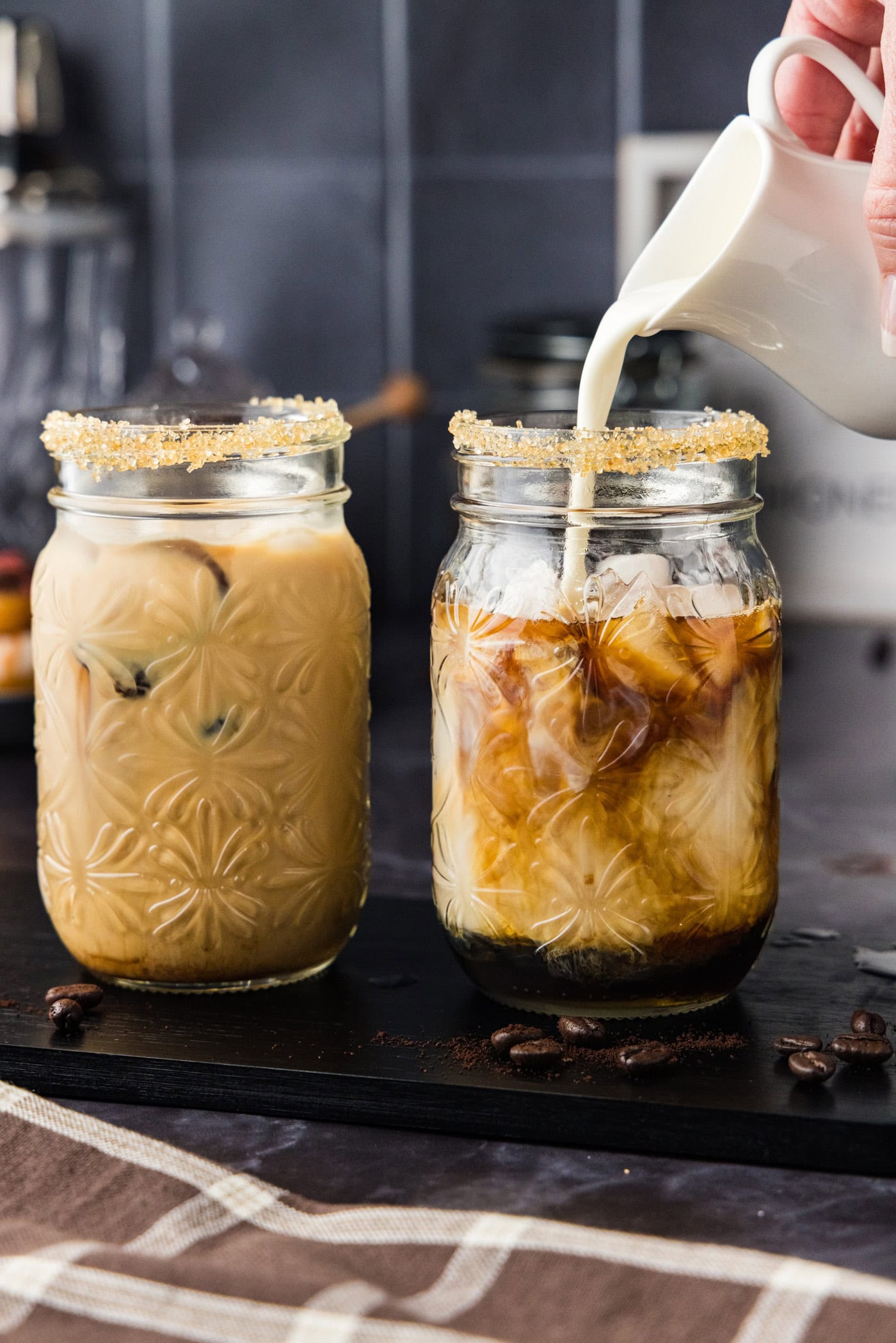- This iced espresso cocktail is just as good with or without a garnished rim. If you’d like to dress up the rim, you can use regular granulated sugar (or brown sugar!) instead of turbinado sugar.