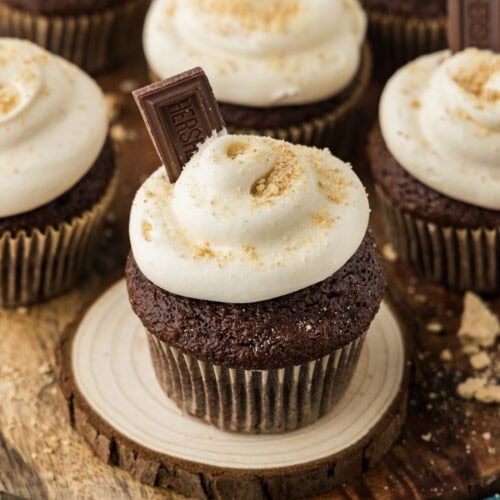 - The nutrition facts listed are only for the cupcakes, graham cracker crumbs, and Hershey’s bars. It does not include nutritional values for the frosting. For nutritional info regarding the topping, visit our Marshmallow Frosting recipe card.